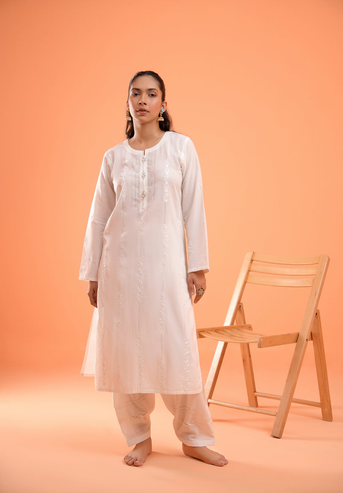 Elevate your style with our Hand crafted Milky White Winter Cotton Unstitched Shirt. Combining Embroidery and Taarkashi, this exquisite piece showcases timeless elegance.